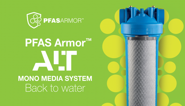 Atlas Filtri präsentiert das neue PFAS Armor™ ALT Mono Media System, ein fortschrittliches, gebrauchsfertiges System, das Familien mit sichererem, von unerwünschtem Geschmack und Geruch freiem Wasser versorgt. Dank seiner innovativen Technologie ist PFAS Armor™ in der Lage, 95 %* der PFAS (PFOA und PFOS) zu reduzieren und gleichzeitig den Geschmack und Geruch des Wassers zu verbessern.