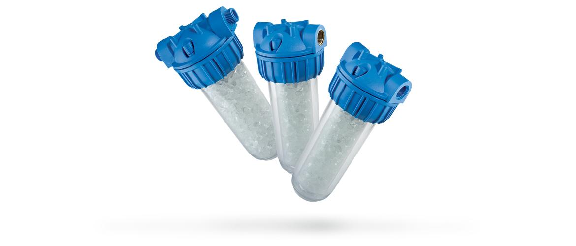 - Modelo 3P con cristales de polifosfato sueltos y modelo 3P HA con cartucho de cristales de polifosfato, alturas de 5", 7", 10".