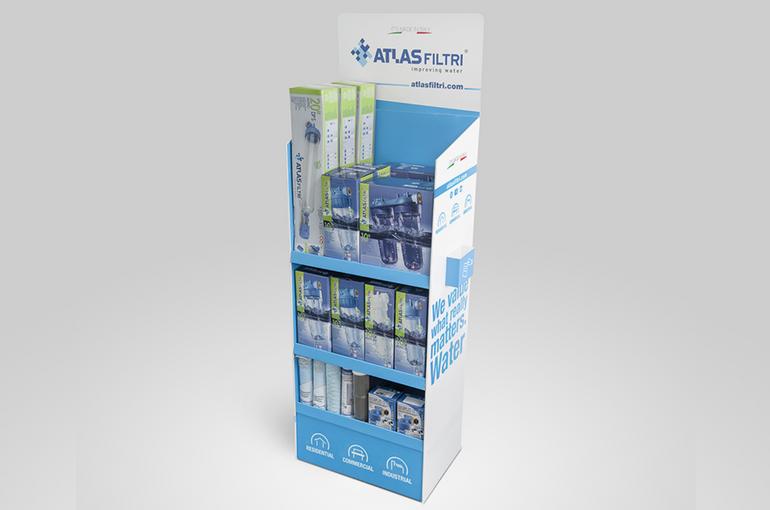 Remplissez l’affichage avec les cartouches et les boîtes originales Atlas Filtri: le design coloré et unique attirera l’attention et les désirs de vos clients comme jamais auparavant.